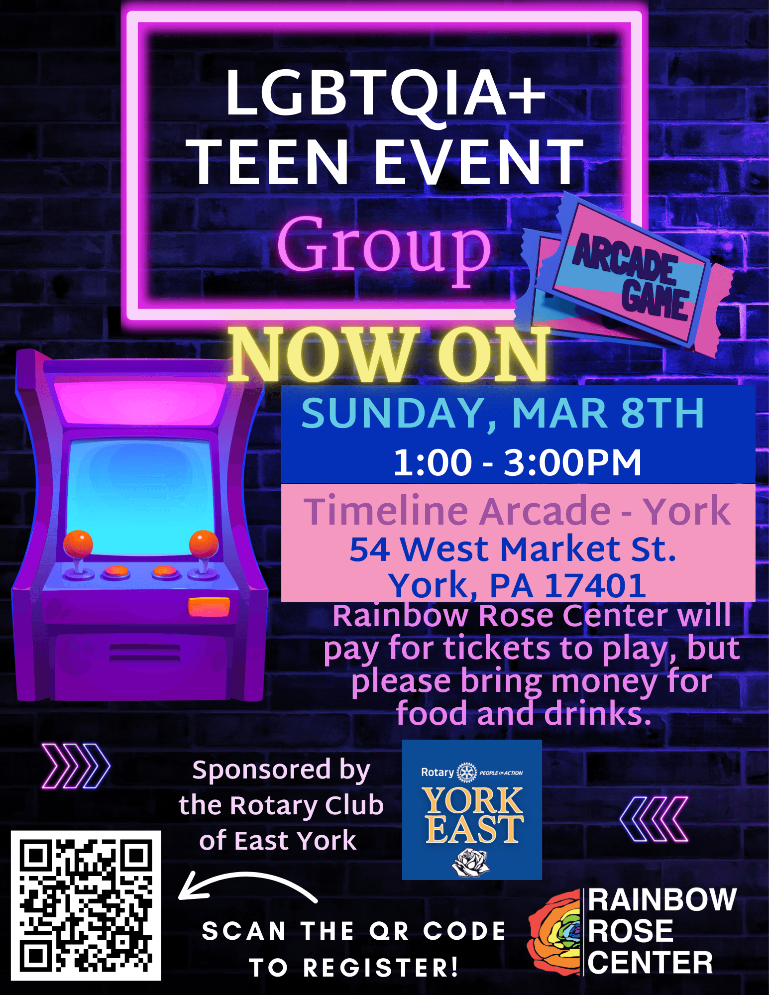 The Rainbow Rose Center Teen Group is switching things up because y'all deserve this arcade trip that has been impacted by TWO storms now!