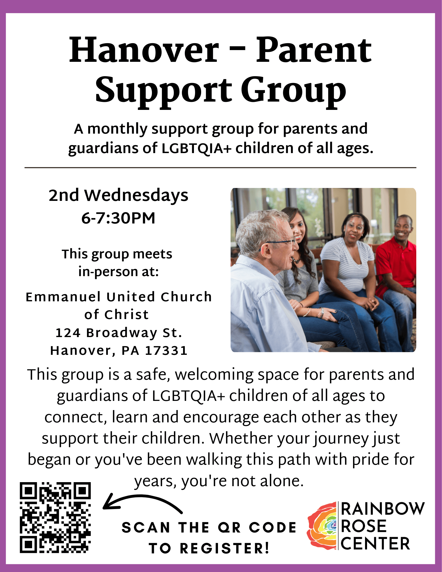 This group is a safe, welcoming space for parents and guardians of LGBTQIA+ children of all ages to connect, learn, and encourage each other as they support their children. Whether your journey just began or you've walking this path with pride for years, you're not alone.